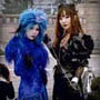 LOTS of Malice Mizer look-a-likes. (Malice Mizer is the biggest Goth band in Japanvery popular). They especially like to copy what I like to call the Claudia-Look. Reminds me of Claudia from Interview with A Vampire. Blonde ringlet curls (they sell wigs like this in Goth stores in Tokyo), blue or green 18th-19th century French-looking dresses with lots of white lace.